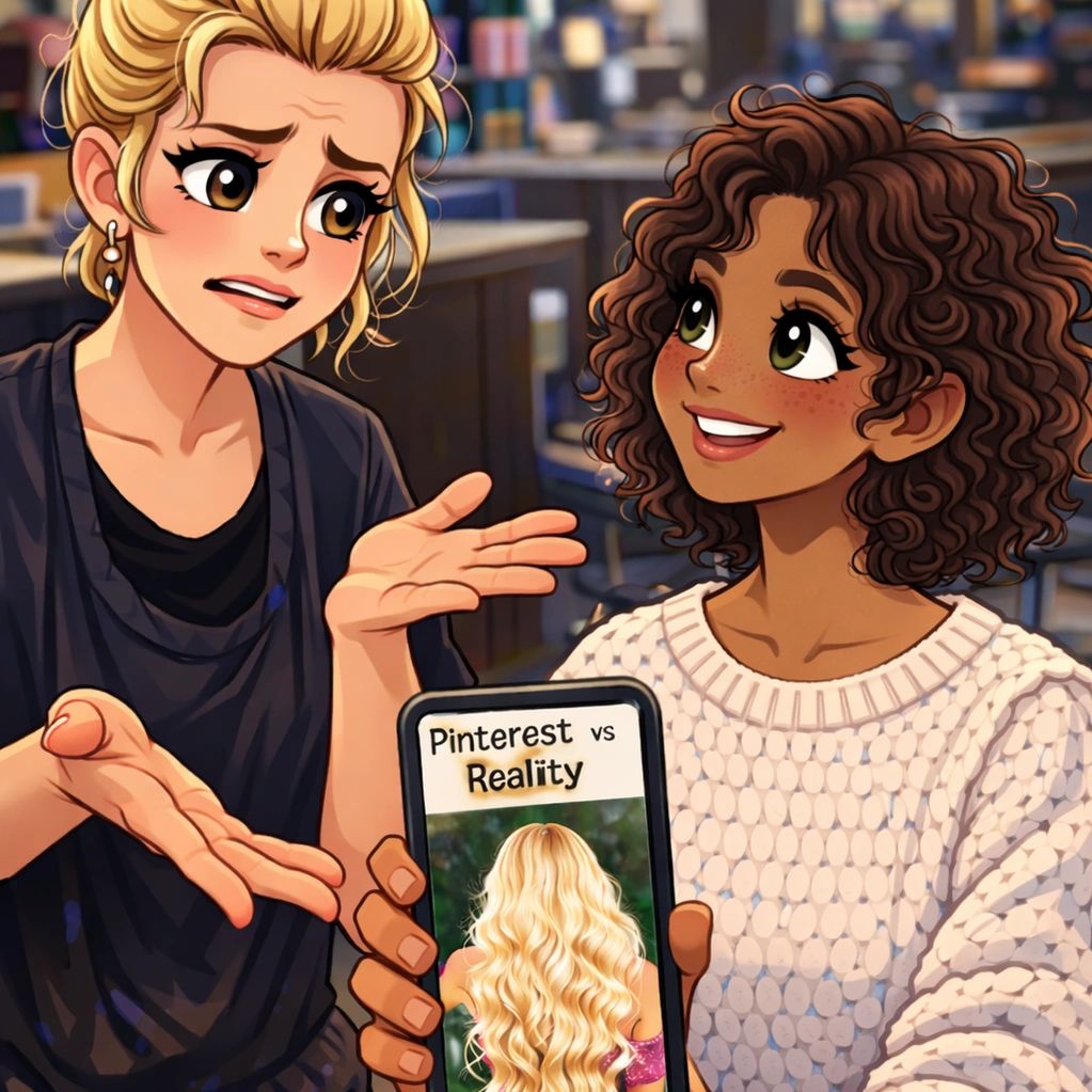When selecting inspiration photos, the most helpful images are of clients with hair similar to yours — in color, density, length, and natural level. This allows for realistic expectations and a more accurate consultation.